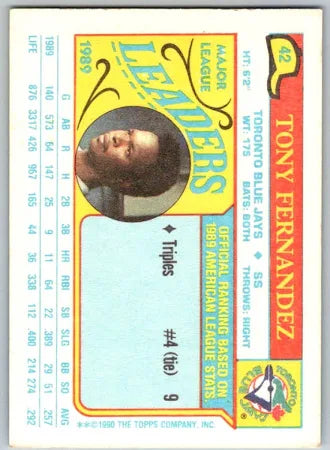 1990 Topps Major League Leaders Tony Fernandez Baseball Card #42