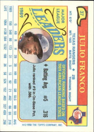 1990 Topps Major League Leaders Julio Franco Baseball Card #37
