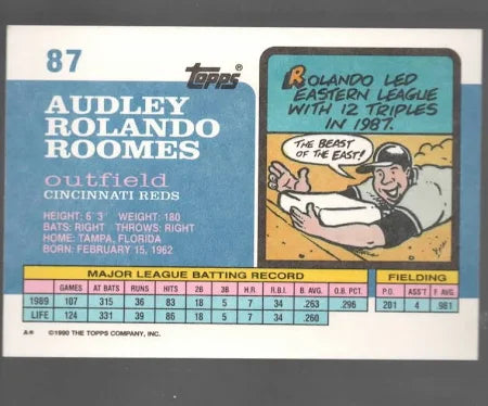 1990 Topps Audley Rolando Roomes Baseball Card #87