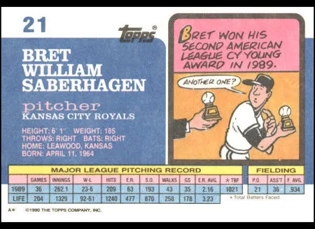 1990 Topps Bret William Sabherhagen Baseball Card #21
