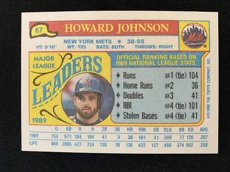 1990 Topps Major League Leaders Howard Johnson Baseball Card #67