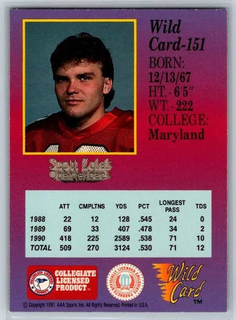 1991 AAA Sports Wild Card Scott Zolak Football Card #151