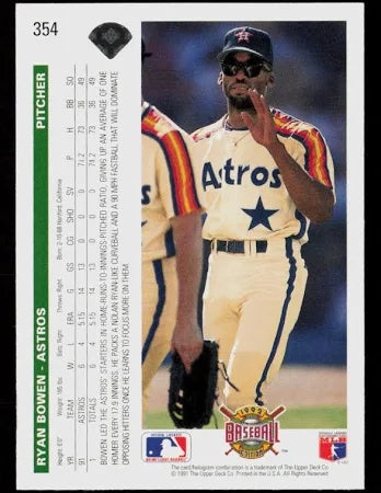 1991 Upper Deck Ryan Bowen Baseball Card #354