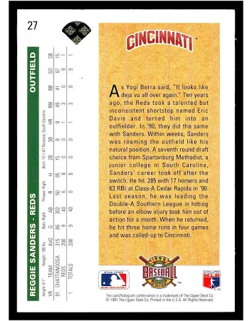 1991 Upper Deck Reggie Sanders Baseball Card #27