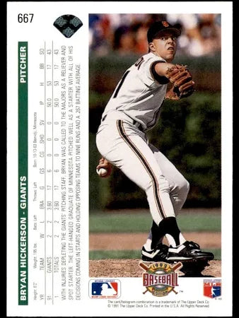 1991 Upper Deck Bryan Hickerson Baseball Card #667