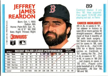 1992 Donruss Highlights Jeff Reardon Becomes Baseball's All-Time Save King June 15,1992 Baseball Card #U-9