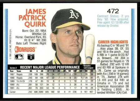 1992 Donruss James Patrick Quirk Baseball Card #472