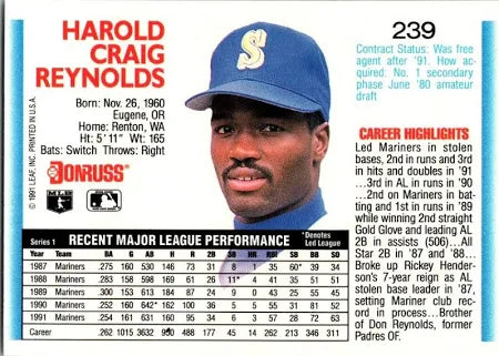 1992 Donruss Harold Craig Reynold Baseball Card #239