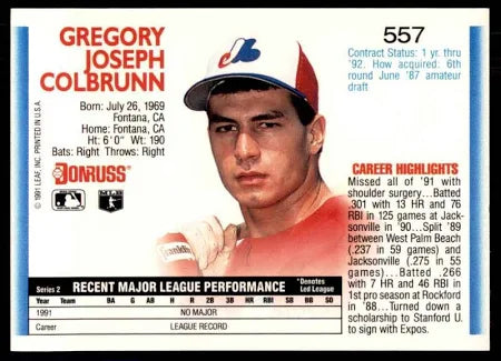 1992 Donruss Gregory Joseph Colbrunn Baseball Card #557