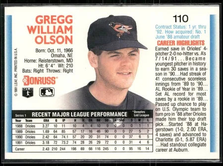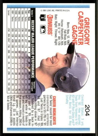 1992 Donruss Gregory Carpenter Gagne Baseball Card #204