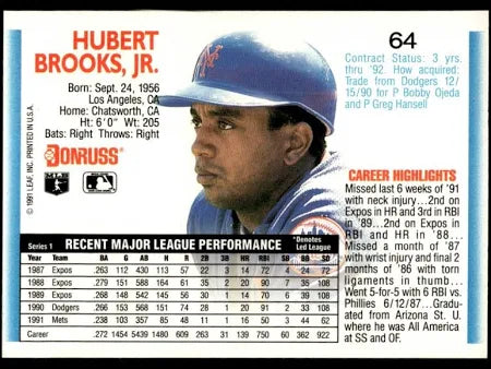 1992 Donruss Hubert Brooks Jr. Baseball Card #64
