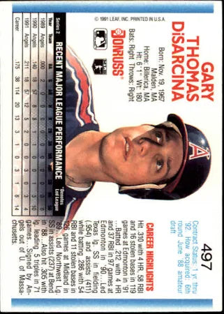1992 Donruss Gary Thomas DiSarcina Baseball Card #497