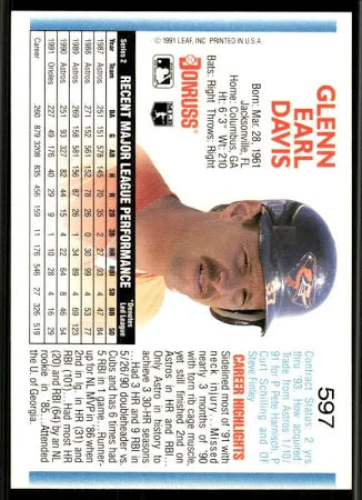 1992 Donruss Glenn Earl Davis Baseball Card #597