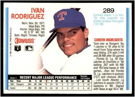 1992 Donruss Ivan Rodriguez Baseball Card #289