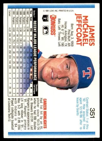 1992 Donruss James Michael Jeffcoat Baseball Card #351