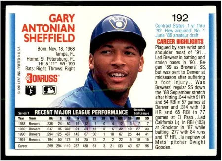 1992 Donruss Gary Antonian Sheffield Baseball Card #192