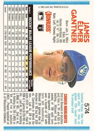 1992 Donruss James Elmer Gantner Baseball Card #574
