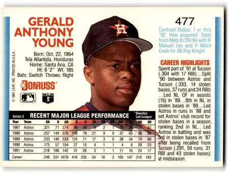 1992 Donruss Gerald Anthony Young Baseball Card #477
