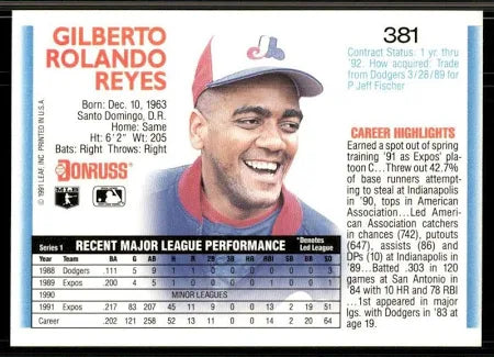 1992 Donruss Gilberto Rolando Reyes Baseball Card #381
