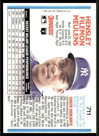 1992 Donruss Hensley Filemon Meulens Baseball Card #711