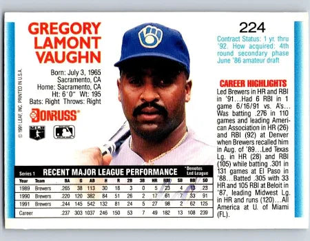1992 Donruss Gregory Lamont Vaugn Baseball Card #224