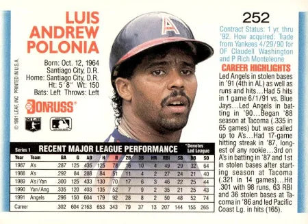 1992 Donruss Luis Andrew Polonia Baseball Card #252
