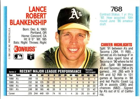 1992 Donruss Lance Robert Blankenship Baseball Card #768