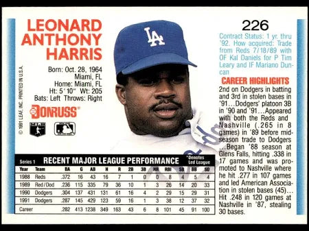 1992 Donruss Leonard Anthony Harris Baseball Card #226