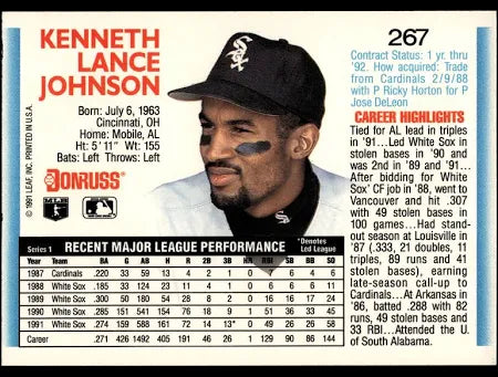 1992 Donruss Kenneth Lance Johnson Baseball Card #267