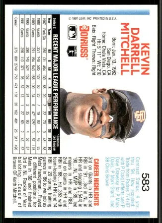1992 Donruss Kevin Darrell Mitchell Baseball Card #583
