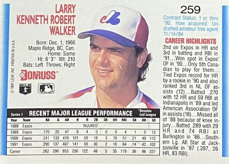 1992 Donruss Larry Kenneth Robert Walker Baseball Card #259