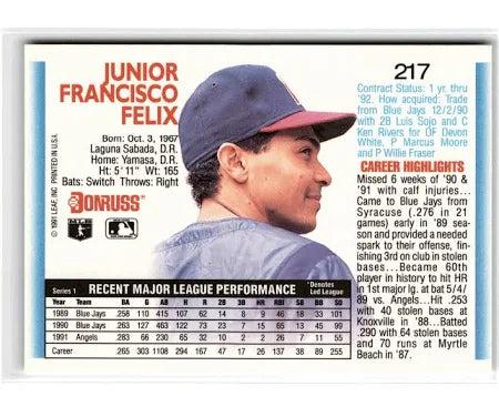 1992 Donruss Junior Francisco Felix Baseball Card #217