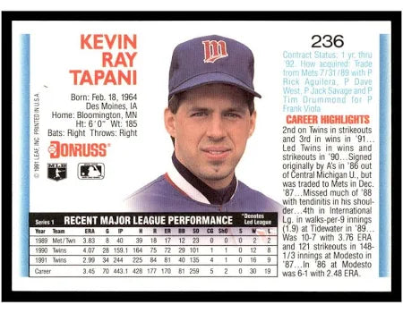 1992 Donruss Kevin Ray Tapani Baseball Card #236