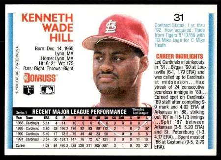 1992 Donruss Kenneth Wade Hill Baseball Card #31