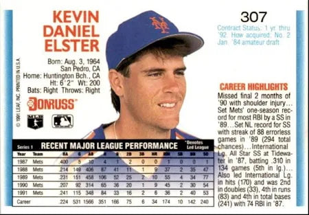 1992 Donruss Kevin Daniel Elster Baseball Card #307