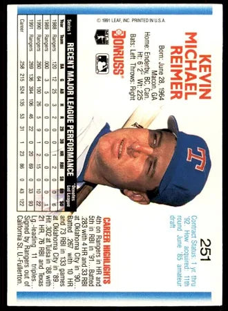 1992 Donruss Kevin Michael Reimer Baseball Card #251