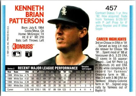 1992 Donruss Kenneth Brian Patterson Baseball Card #457