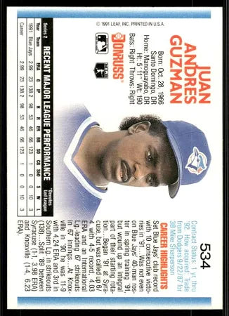 1992 Donruss Juan Andres Guzman Baseball Card #534