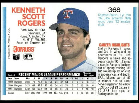 1992 Donruss Kenneth Scott Rogers Baseball Card #368