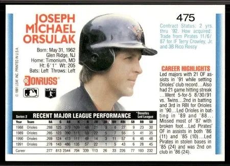 1992 Donruss Joseph Michael Orsulak Baseball Card #475