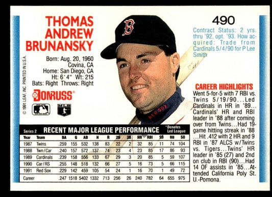 1992 Donruss Thomas Andrew Brunansky Baseball Card #490