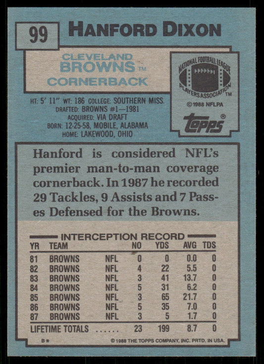 1988 Topps Hanford Dixon Football Card #99