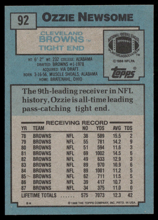 1988 Topps Ozzie Newsome Football Card #92