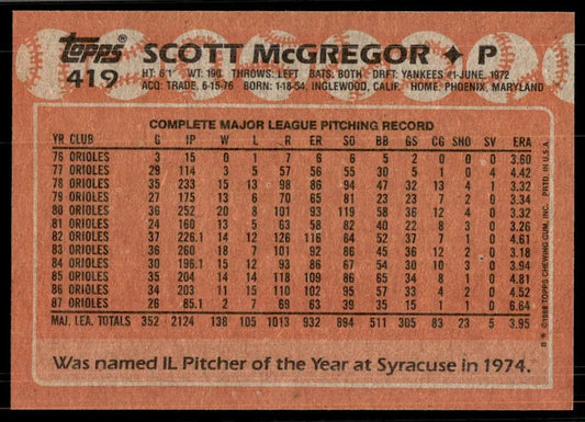 1988 Topps Scott McGregor Baseball Card #419