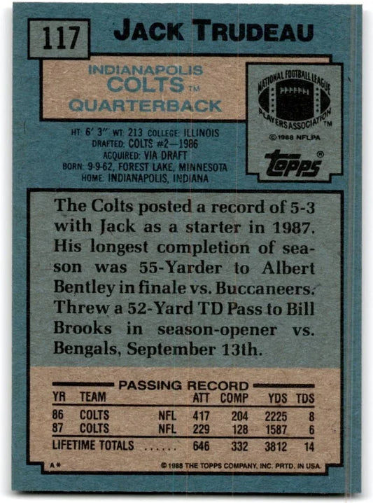 1988 Topps Jack Trudeau Football Card #117