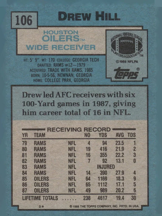 1988 Topps Drew Hill Football Card #106