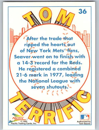 1992 Pacific Tom Terrific Tom Seaver Winning with the Reds Baseball Card #36