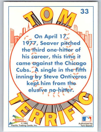 1992 Pacific Tom Terrific Tom Seaver One-Hitter Baseball Card #33