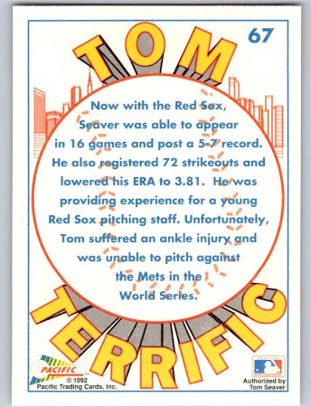 1992 Pacific Tom Terrific Tom Seaver Red Sox Man Baseball Card #67