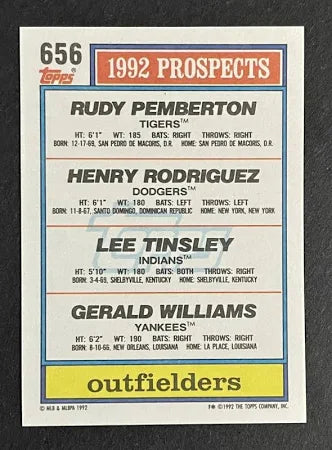 1992 Topps 1992 Prospects Rudy Pemberton, Henry Rodriguez, Lee Tinsley, Gerald Williams Baseball Card #656